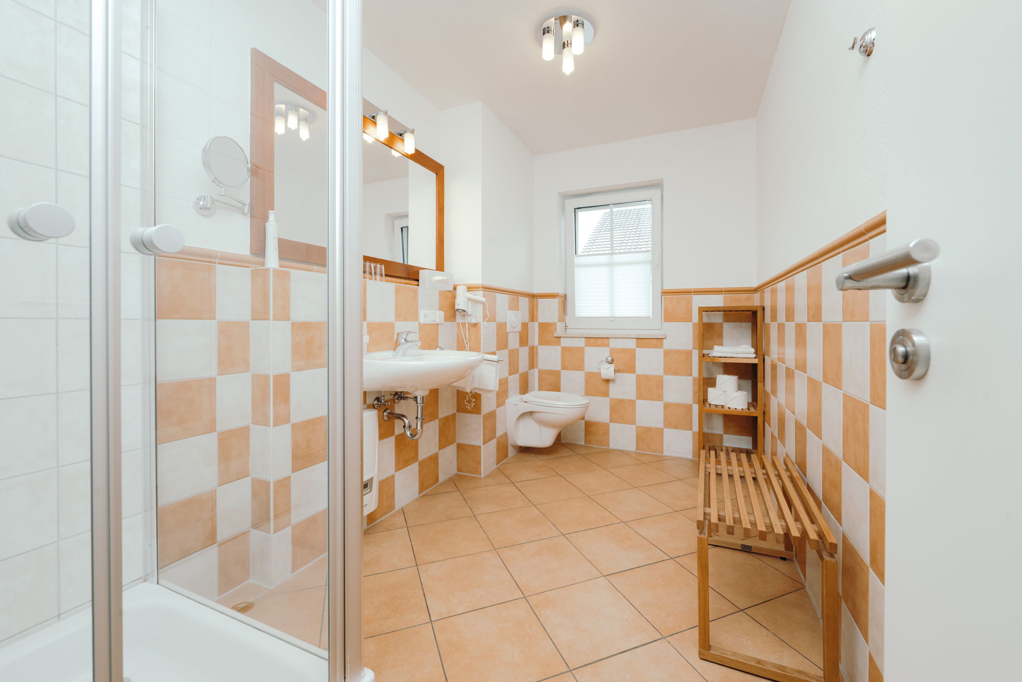 - Dusche, WC, Kosmetiktücher, Kosmetikspiegel